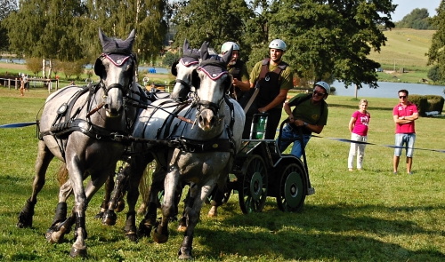 Poslední srpnový víkend jsem strávil v Humpolci na Zlaté podkově. V sobotu běhala spřežení, což bylo zajímavé, ale než nějaké kolem nás proběhlo, měl jsem skoro křečáky. Akce ve stylu filmu Ben Hur žádná. Dostal jsem VIP vstupenku, takže náklady naštěstí nula. Po dvou hodinách čumendy jsem jel domů. Bylo pěkné dusno. V sobotu jsem se jel podívat na ukázku chlaďasů. Kdyby to nebylo s komentářem, který byl zajímavý, tak bych u nich taky moc dlouho nevydržel. Parkury mě taky moc neřekly, takže jsem si dal v přilehlé hospodě pěkně tlustý smažák a jel jsem na návštěvu do Kojčic.