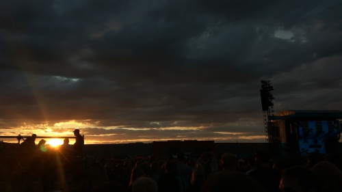 Na podzim, kdy jsem jezdil s klukama kolem Mikulova jsem na jedné z občerstvovacích stanic, kde fungoval internet, koupil lupeny na koncert Ed Sheerana. V neděli jsem v pět nakopnul svůj vehikl a po zacpané dálnici jsem přískoky dorazil na Chodov. Nechal jsem zde auto, protože dál se plazit se mi nechtělo. Dalším překvapením byla zavřená lávka přes dálnici, takže se k Metru šlo oklikou. Naštěstí někdo křídou na zem namaloval zkratku přes parčík. Na Letňany jsem dorazil před poslední písničkou předskokana. Už při vstupu jsem zaznamenal fronty před záchody, což mě odradilo dát si pití. Ani jsem se nikam necpal dopředu, protože jsem čekal, že po konci koncertu bude problém se včas přesunout k autu. Při zapadajícím slunci mohl koncert začít.