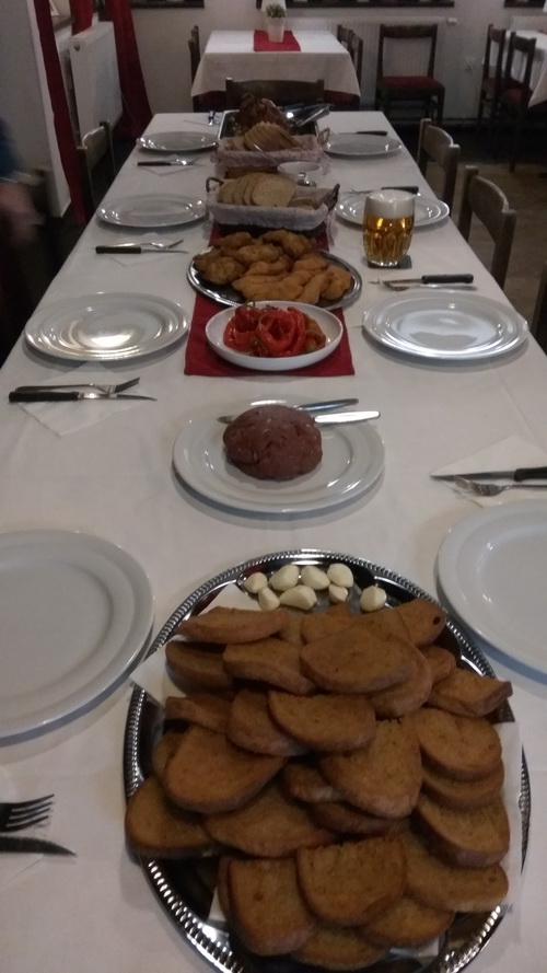 Sice chyběli tři účastníci zájezdu, ale nakonec zbyl jeden řízek a dvě topinky.