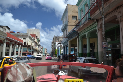 Prý nejlevnější, ha, ha, ha. My jsme si dali jen kafe. Však bude na nákup ještě dost času. Nastal přesun do centra, kde na nás čekaly Ameriky. V nich jsme projeli Starou Havanu. To urychlilo shlédnutí zajímavých míst, ale letem světem zrovna nemusím. Každopádně svést se starou kraksnou potěšilo.