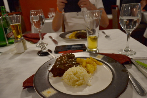 Jakmile jsme dorazili do hotelu rychle jsme se převlékli do něčeho normálního a odkráčeli jsme na španělskou večeři La Carte.Pojda si dal Langustu za příplatek 15 cuc a my hovězí. Zdarma byla voda, piva jsme si platili. K jídlu nám hrála místní kutálka a restaurace byla poloprázdná. Na to, že měla být celá rezervovaná. Docela mě jídlo zklamalo.