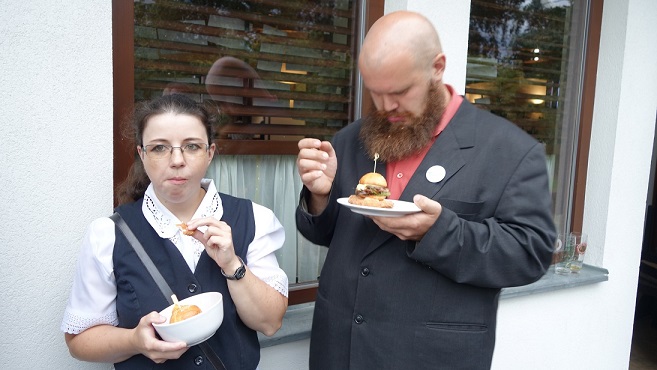 V pátek jsme byli pozváni na svatbu syna našeho kamaráda. Dojel jsem do zahradnictví koupit stromek v květináči, chtěl jsem švestku nebo hrušku. Nakonec jsem si odvezl meruňku. Ještě jsem to od prodavačky schytal, jestli si z ní nedělám srandu, kupovat švestku v létě. Ukázal jsem na svoji pražskou SPZ, a ubezpečil ji, že určitě ne. Ke stromku jsem přidal pár tisícovek a večer jsme se přesunuli na svatební raut na Fit farmu, kde už byli svatebčané.. Jídla a pití bylo hodně, kapela hrála, zapálil jsem si doutník, s tím, že dokouřím, odvezu auto k domovu a pěšky se vrátím. Jenže doutník, vydržel hořet docela dlouho, padla tma, tak jsem si dal topinku s tatarákem, malou kofolu a jel jsem domů.
